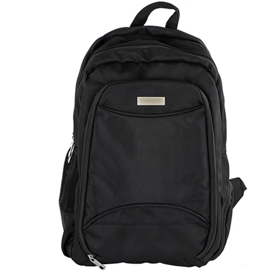 Mochila de 3 compartimentos con cierre, espacio acolchado para laptop max. de 16 pulgadas. organizador interno y porta llaves. Bolsa lateral de red y bolsa lateral con cierre, respaldo y tirantes acojinados con compartimento trasero secreto con funda para celular y placa metálica.