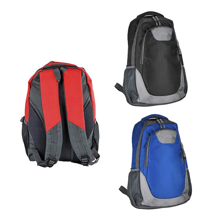 Mochila de 2 compartimentos con espacio para laptop max. de 16 pulgadas, 2 bolsillos laterales de red y compartimento central con cierre y divisor interno. Respaldo y tirantes acojinados.