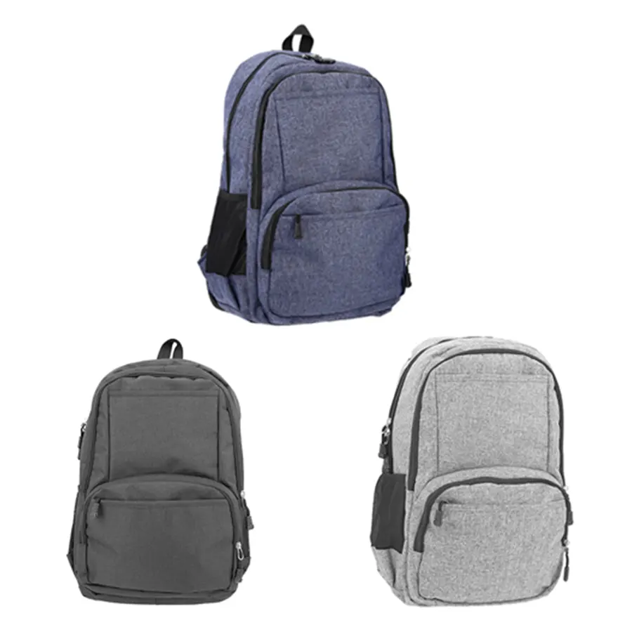 Mochila con cierre de 4 compartimentos con espacio para laptop max. de 16 pulgadas. tirantes acojinados, bolsas laterales de malla y bolsa frontal.