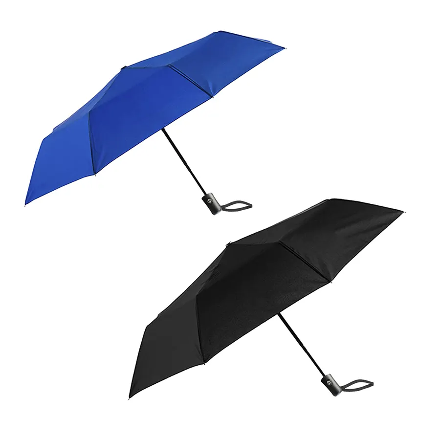 Paraguas de bolsillo con sistema de apertura y cierre automático con mango de plástico. Incluye funda.