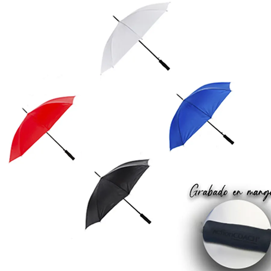 Paraguas con apertura automática, 8 gajos y mango de eva. Incluye funda.